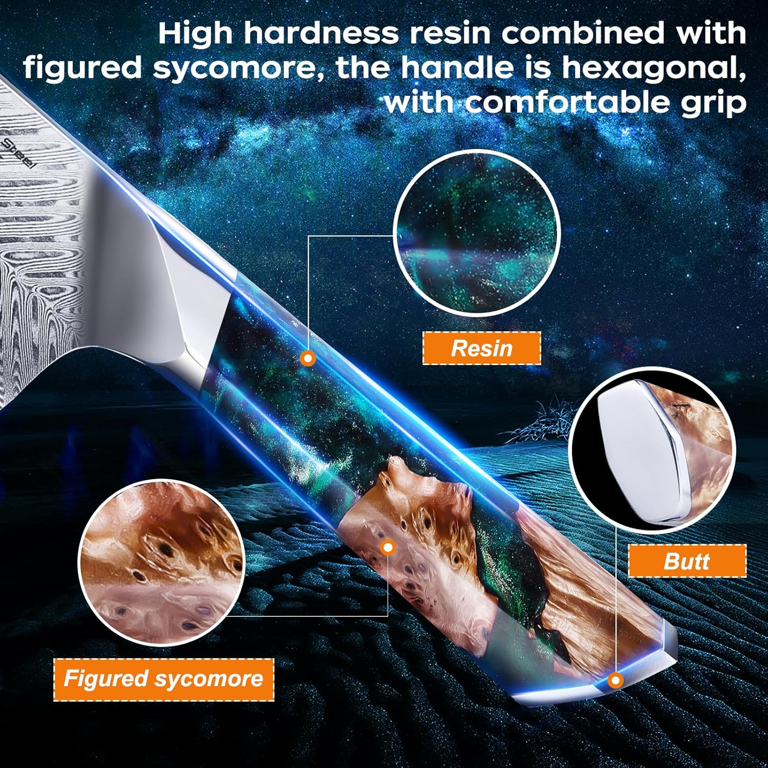- Premium Stable-Wood & Resin Handle; Stable-wood dramatically improves the stability of timber after high-temperature treatment.